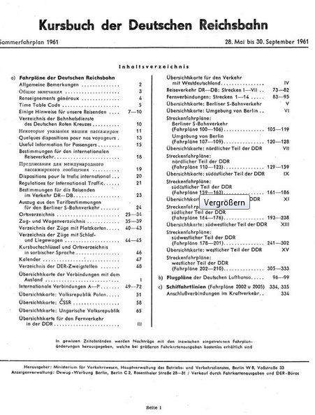 Sommerfahrplan, gültig vom 28.Mai 1961 bis 30. September 1961.