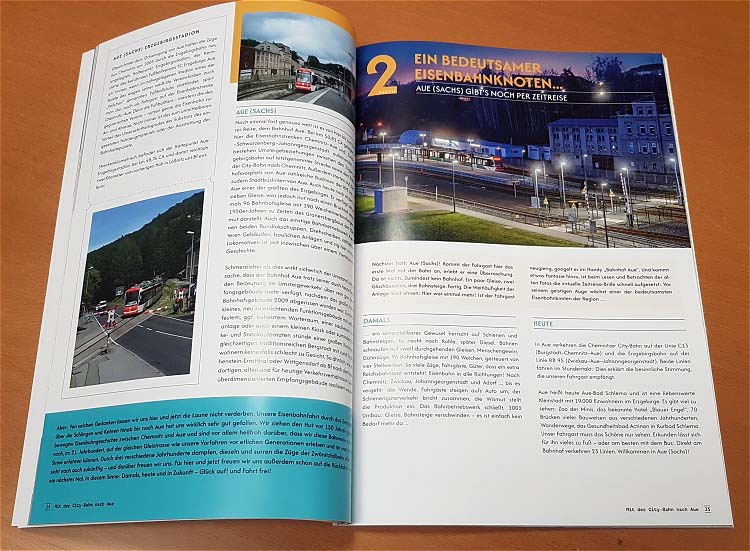 Die Broschüre beleuchtet die Entwicklung der Strecke von der Entstehung bis heute und enthält interessantes Hintergrundwissen sowie zahlreiches beeindruckendes Fotomaterial. Es gibt Kapitel zur Streckenhistorie als auch zum heutigen Betrieb der Zwönitztalbahn unter der Betriebsführerschaft der City-Bahn Chemnitz. Schwerpunkt/Hauptthema ist der Streckenabschnitt Chemnitz – Aue der CA-Linie, aber es gibt auch ein mehrseitiges Kapitel zum Abschnitt Aue – Adorf.