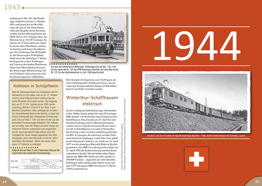 Das Buch über die Schweizer Bahnen der 1940er-Jahre enthält viel Hintergrundwissen zu jedem Jahr. Der Autor hat außerdem seltene Fotos aus historischen Archiven und Sammlungen zusammengetragen.