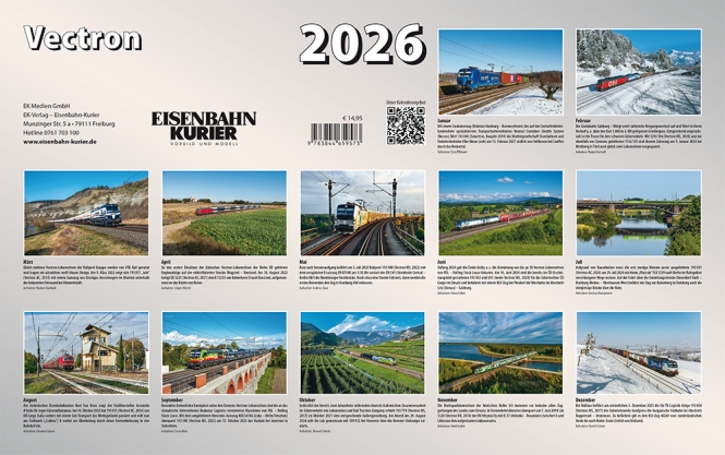 EK-Verlag, 13 farbige Kalenderblätter auf Kunstdruckpapier mit insgesamt 12 Abbildungen, Querformat 48 x 30 cm, Spiralbindung.