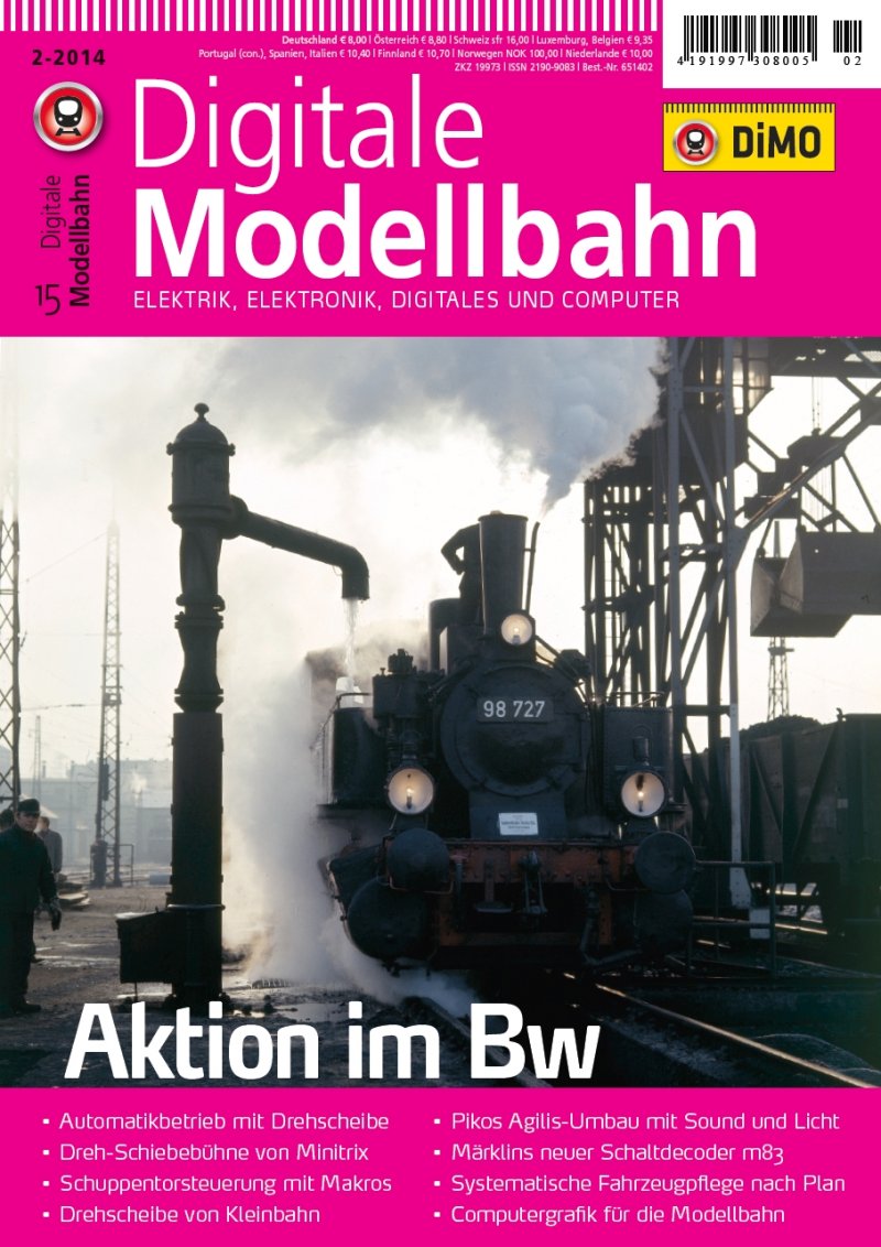 Thema werden auch Drehscheibendecoder (z. B. von Stärz und Sven Brandt) sowie die softwareseitige Anbindung zur Automatisierung sein. In einem Bw gibt es aber noch mehr zu bewegen. Bekohlungskräne sind hier genau so beliebte Kandidaten wie Wasserkräne oder Schuppentore. Mit dem grundsätzlichen Verständnis der Abläufe im Bw kann man das Durchlaufen der einzelnen Behandlungsstationen mit seinen Loks zur abendfüllenden Rangieraufgabe machen. Oder man entwickelt eine automatische Steuerung, die eine Lok im Bw-Zufahrtsgleis entgegennimmt und sie dann vorbildgerecht Station um Station bis hin zum korrekt gedrehten Abstellen im Schuppen leitet. Wie dies geht und welche technischen Voraussetzungen gegeben sein müssen, zeigt das Heft beispielhaft mit der Software Modellstellwerk.